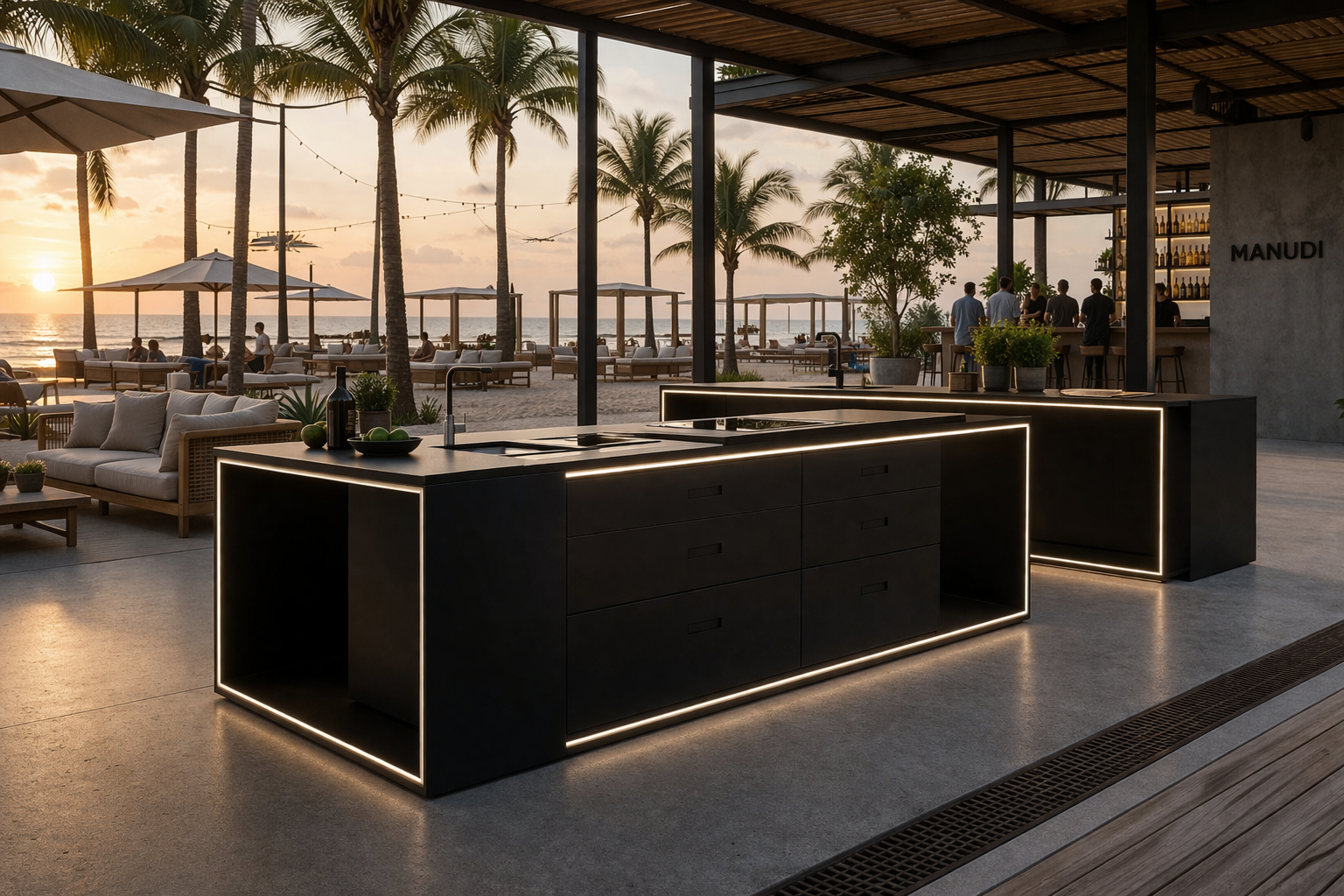 Die modulare Stahlküche geht einen anderen Weg. Als durchdachtes Systemprodukt wird sie industriell vorgefertigt, individuell-präzise konfiguriert und vor Ort lediglich platziert und angeschlossen. Lieferzeit ab ca. 5 Tagen.